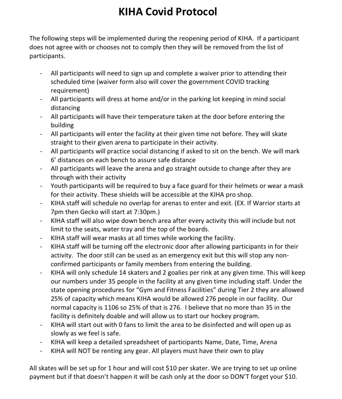 Committment to KIHA - Our youth program asks that any youth participant that does sign up please make their Saturday games for the benefit of our program and its fellow members. Missing games to participate elsewhere may result in a refund of fees and loss of participation.